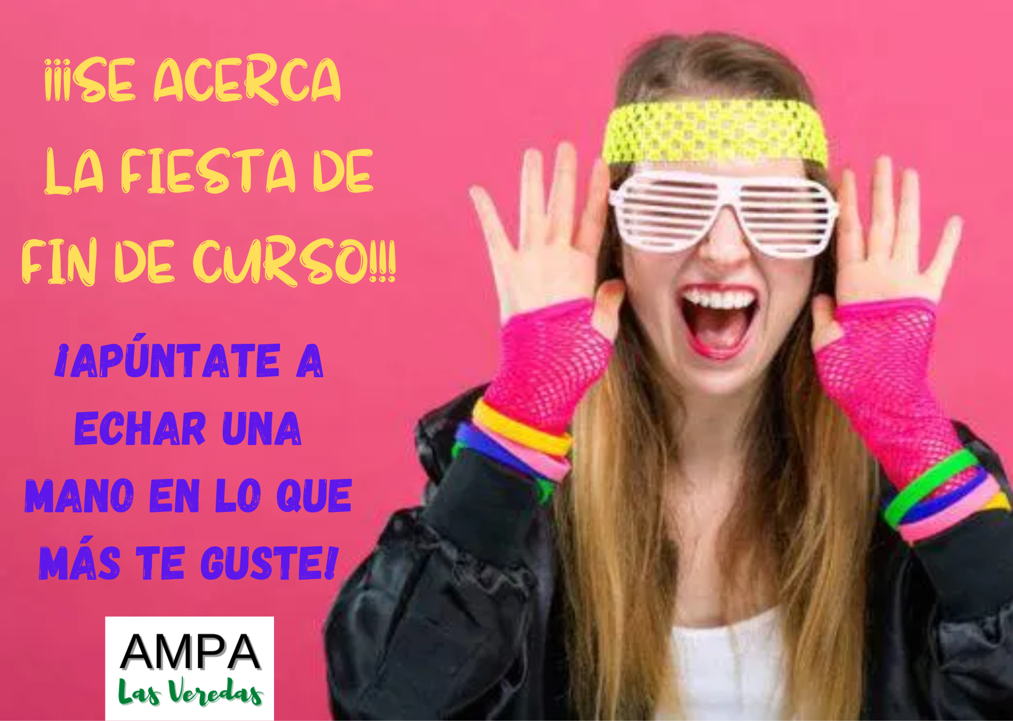 La AMPA en colaboración con el Colegio estamos empezando a preparar la fiesta de fin de curso para el próximo 16 de junio y necesitamos vuestra colaboración para llevarla a cabo. Os animamos a que os apuntéis en el siguiente formulario para lo que os apetezca colaborar.