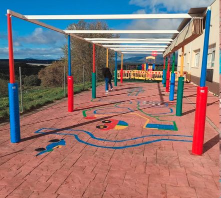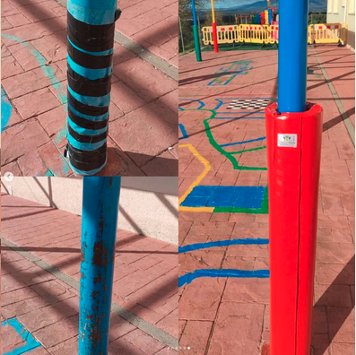 - También pintamos las columnas y juegos del patio de infantil, y se compraron protectores nuevos, ¡menudo cambio!