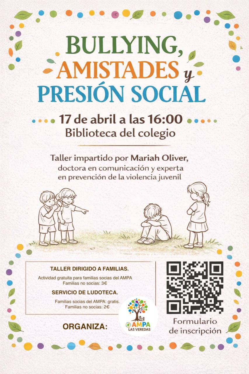 El próximo viernes 17 de abril tendremos una charla para familias donde abordaremos un tema que nos preocupa a todos: cómo acompañar a nuestros hijos en sus relaciones, detectar situaciones difíciles y saber cómo actuar.
