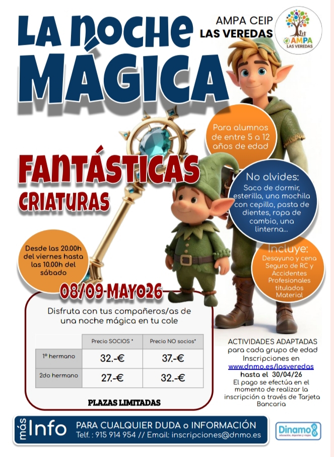 Socios AMPA: bonificación de 5€ en los precios anteriores.