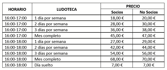 LUDOTECA: servicio ofrecido por Childhood para las tardes a partir de Octubre, las inscripciones se realizarán a través de la página web de Childhood Educación y Ocio: www.childhoodeducacionyocio.com